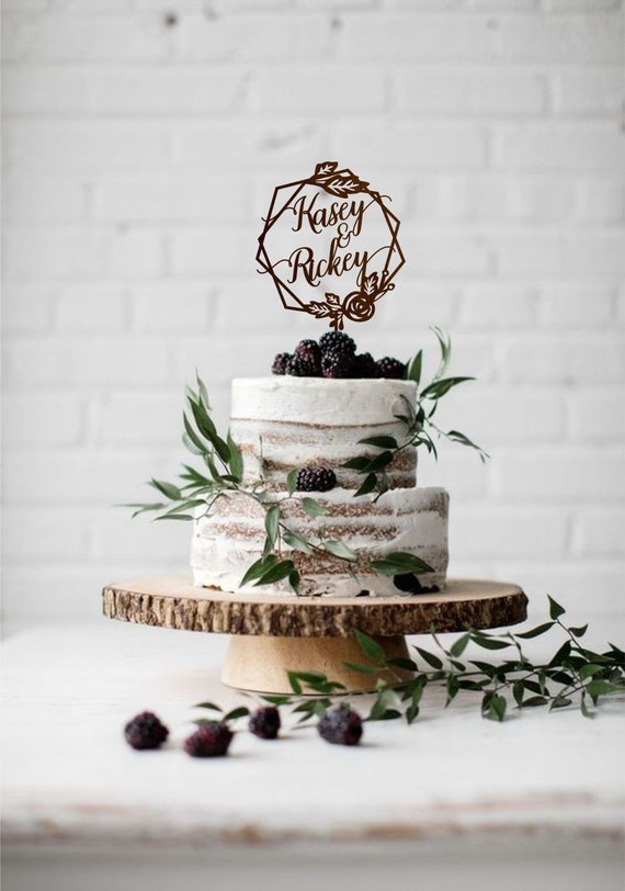 Hexagon Names Wedding Cake Topper Geometric Cake Topper Couple Etsy