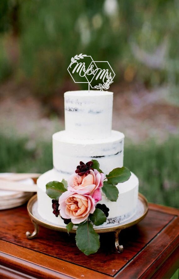 Hexagon Mr Mrs Wedding Topper Geometric Wedding Cake Topper Etsy