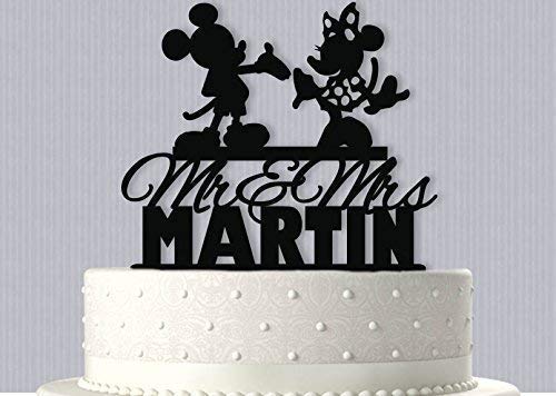 Black Acrylic Mickey Minnie Cake Topper Personalized Wedding Cake