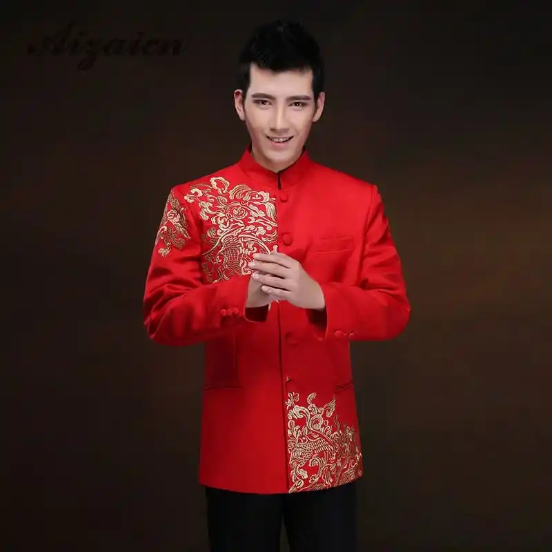 Groom Wedding Suit Red Traditional Chinese Clothing For Men