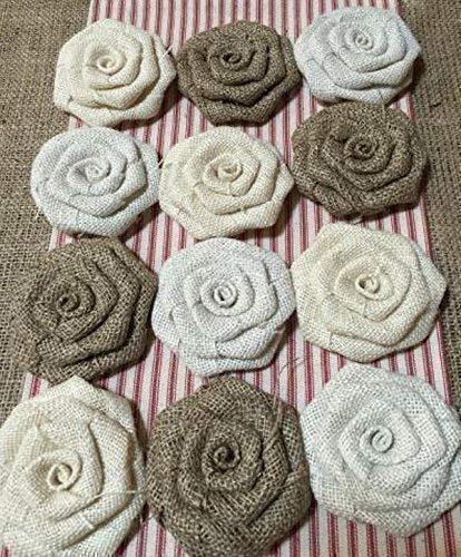 Amazon Com Set Of 12 Burlap Flowers In Shades Of Neutral 3 5