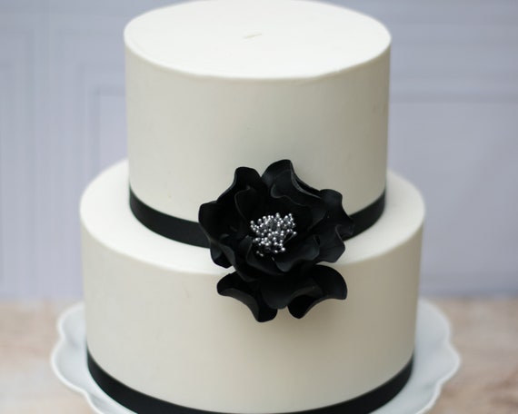 Black And Silver Open Rose Sugar Flower Wedding Cake Topper Etsy