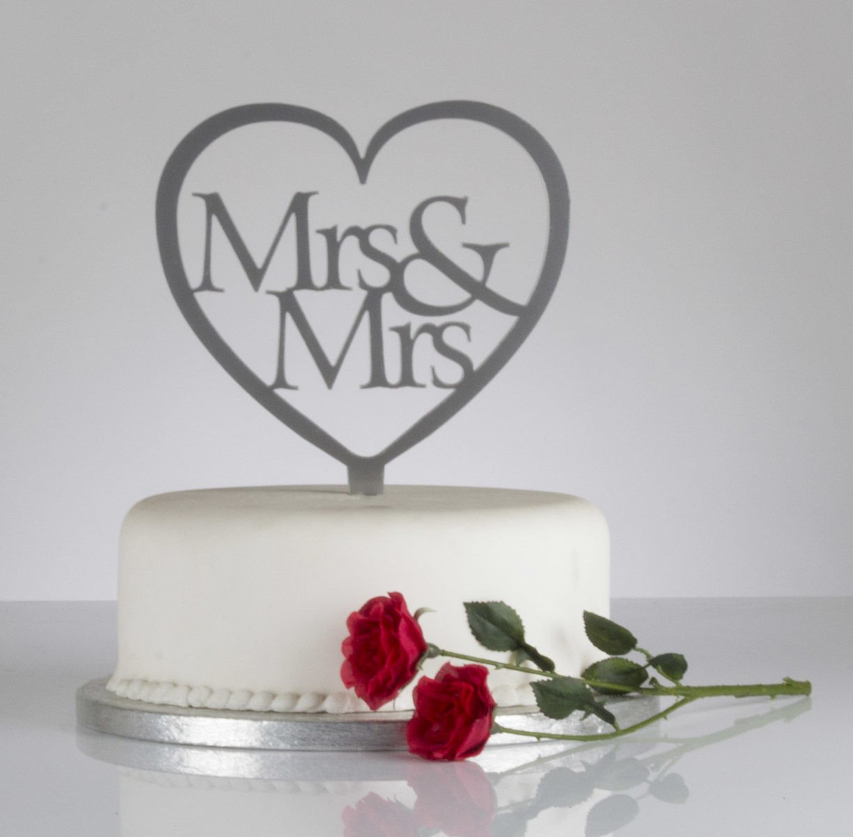Mrs Mrs Heart Shaped Wedding Cake Topper Silver Amazon Co Uk