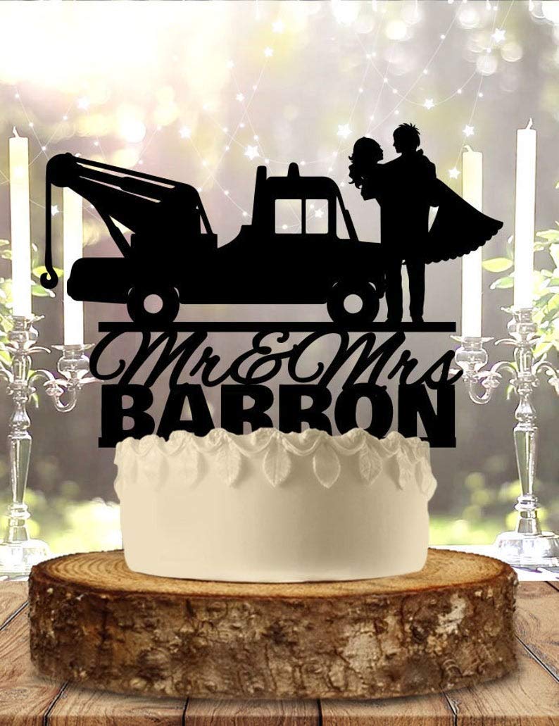 Zonaraman Tow Truck Personalized Wedding Cake Topper Anniversary