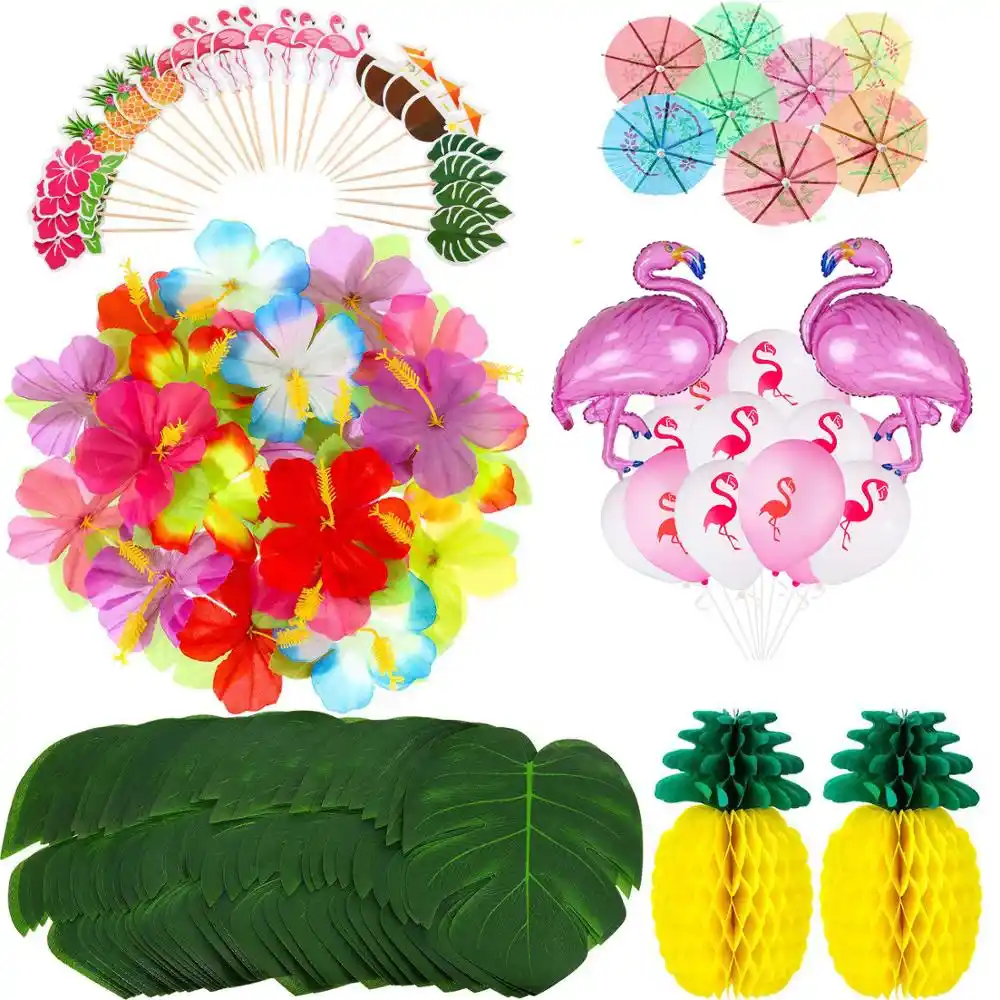 Hawaiian Party Decorations Artificial Flowers Palm Leaves Luau