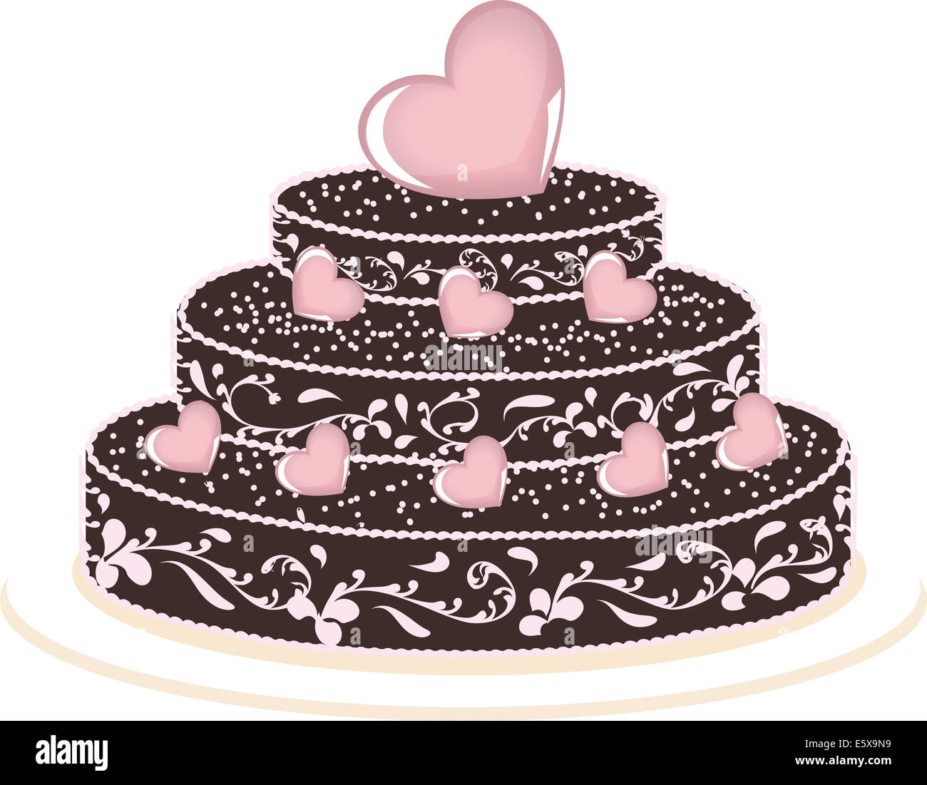 Big Chocolate Cake With Hearts On White Background Stock Photo