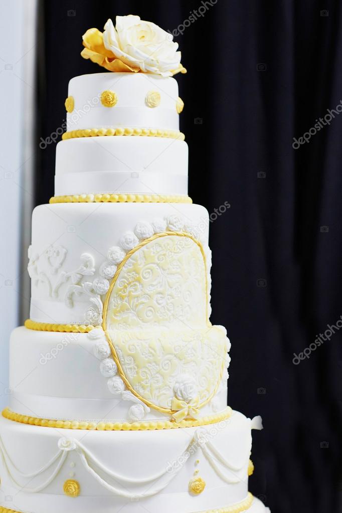 Wedding Cake Decorated With Yellow Sugar Pattern Stock Photo