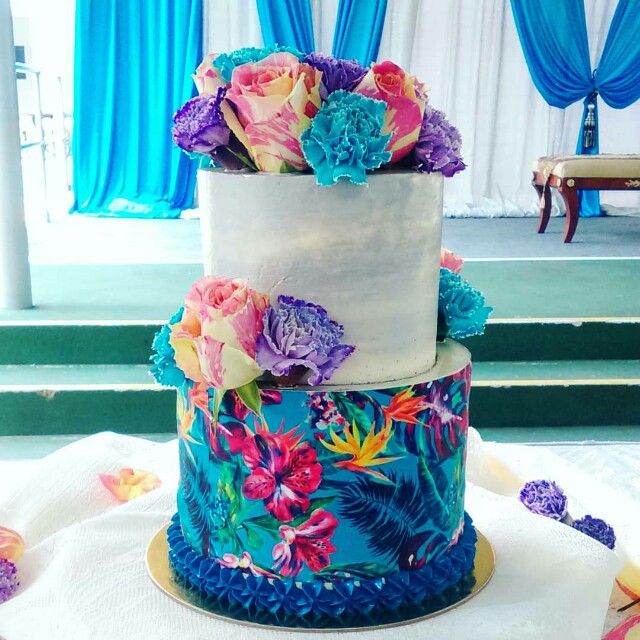 2 Tier Colorful Floral Tall Wedding Cake Food Drinks Baked