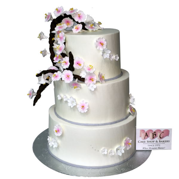 2083 3 Tier White Cake With Cherry Blossom Flowers Abc Cake