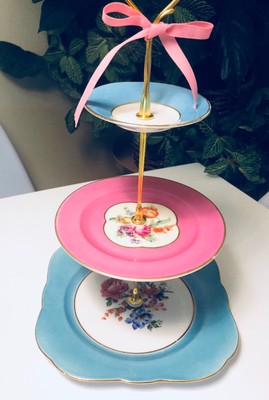 Antique Limoges Wedding Cake Stand 3 Tier Rare Floral Square Plate