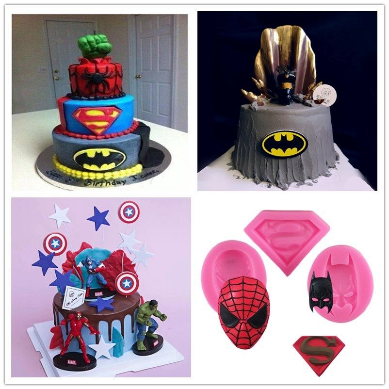 3d Silicone Superman Spider Man Batman Fondant Clay Molds For