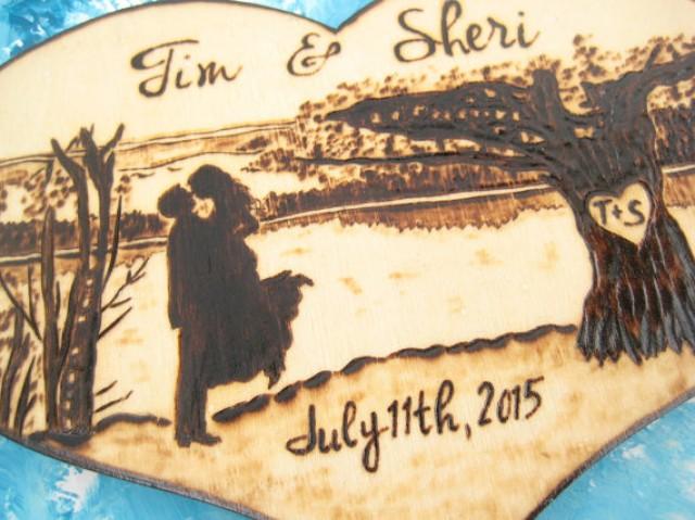 Custom Lake Wedding Cake Topper Blended Family Rustic Wood Heart