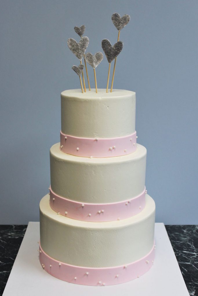 3 Tier White Wedding Cake With Dusty And Blush Pink Rose And Love
