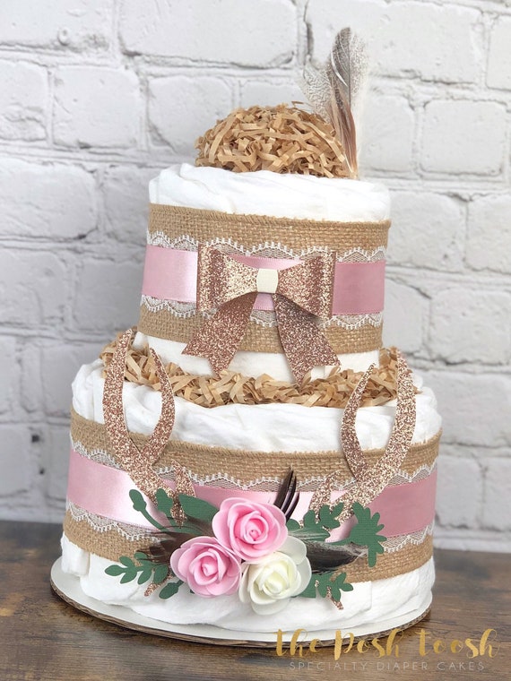 Deer Antler Diaper Cake Shabby Chic Boho Rustic Burlap Lace Etsy