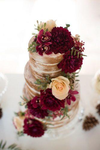 Burgundy Flower Burgundy And Gold Wedding Cake