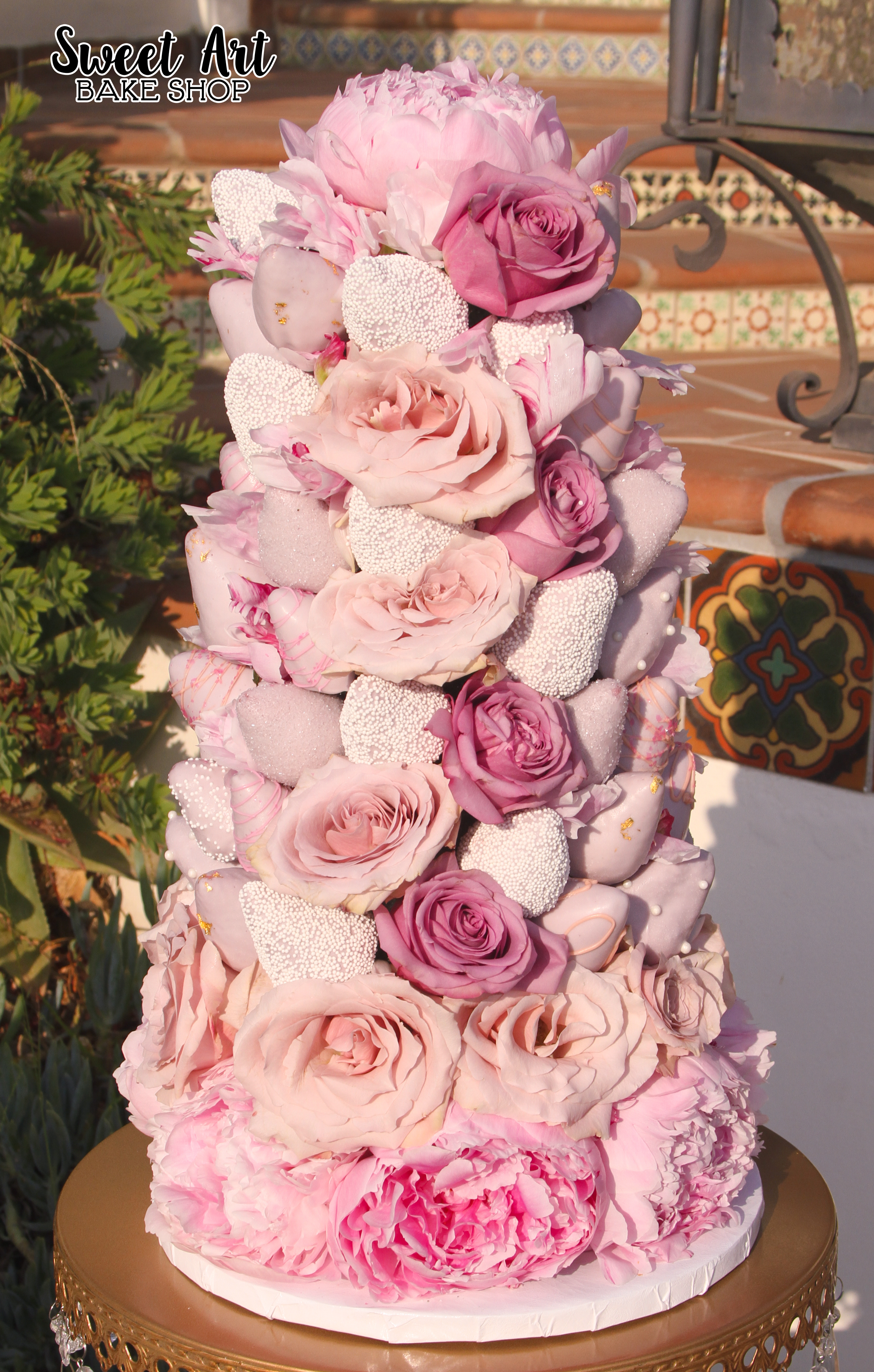 Two Tier Chocolate Covered Strawberry Wedding Cake