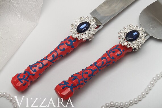 Wedding Cake Serving Sets Coral And Navy Wedding Wedding Etsy