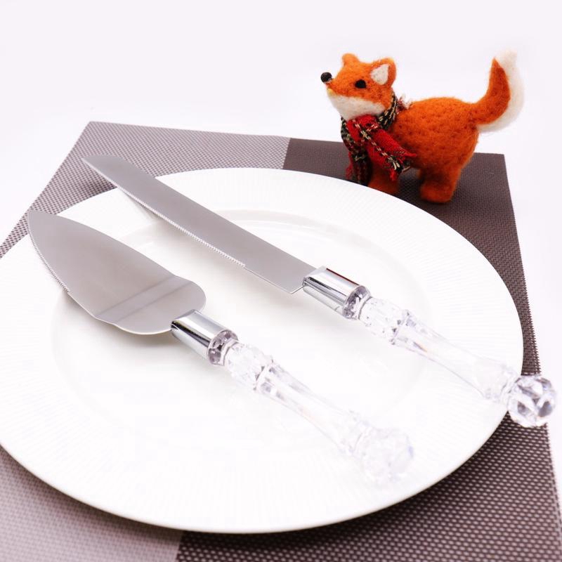 Stainless Steel Wedding Cake Knife Set With Acrylic Crystal