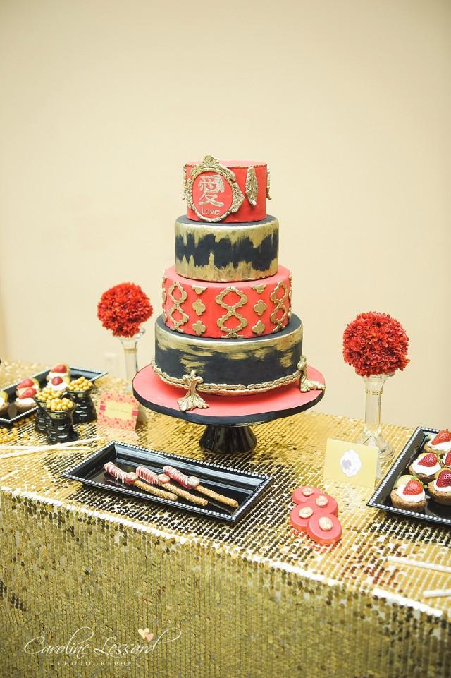Elegant Red Black And Gold Wedding Cake 2515797 Weddbook