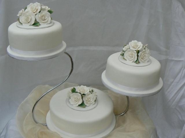 Elegant 3 Tier Wedding Cake With White Roses And Bride And Groom