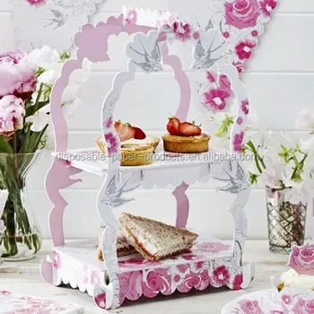 Vintage Theme Party Shabby Vintage Retro Pink Paper Floral 2 Tier