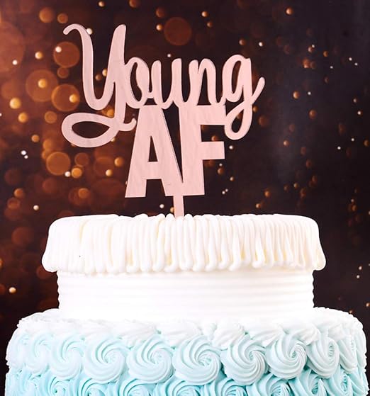 Young Af Rose Gold Glitter Acrylic Cake Topper For Celebrate Funny