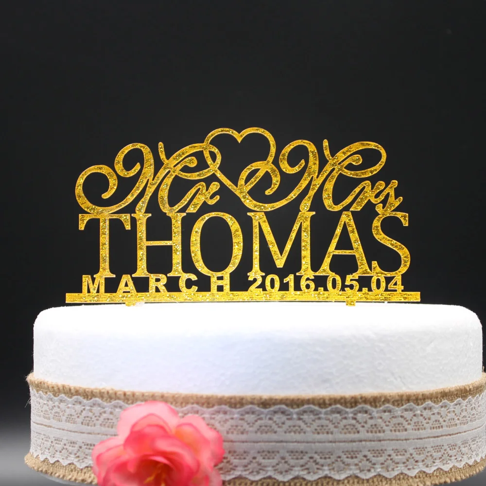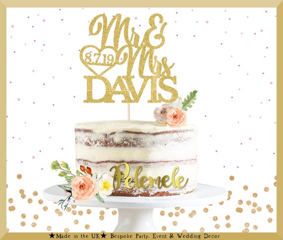 Personalized Mr Mrs Last Name Cake Topper Glitter Wedding Etsy