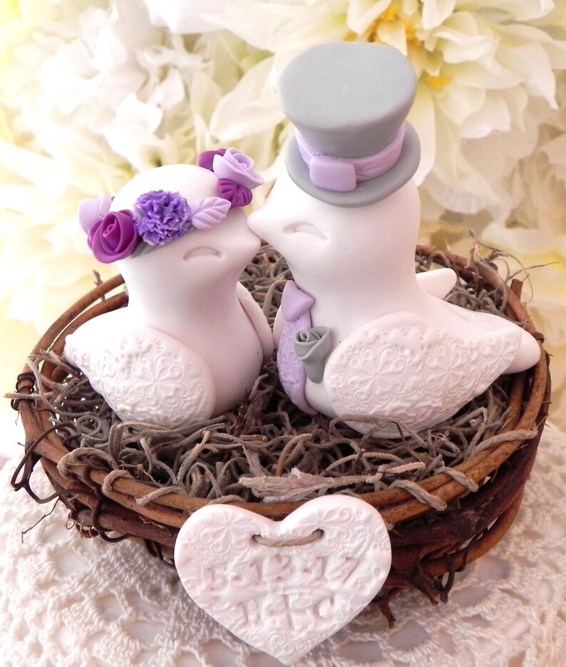 Rustic Love Bird Wedding Cake Topper Violet Lilac And Plum Etsy