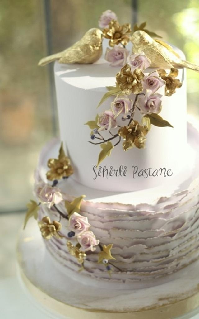 Gold Love Birds Wedding Cake Cake By Sihirli Pastane Cakesdecor