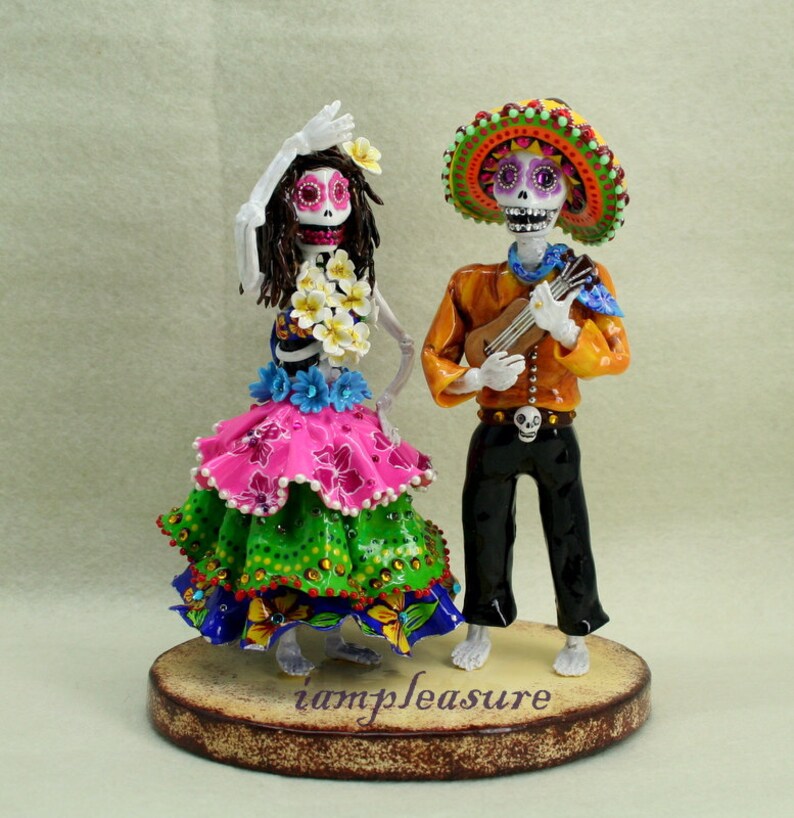 In spanish brides grooms are called novioswe have sold skeleton bride groom cake toppers by the hundreds as well as all types of novio decorated sugar skulls skulls figurines nichos matchbook retablos rattlesthe most popular day of the dead wedding item are the papel picado banners which are customized with the hand cut names of the novios as well as images of the skeleton bride. Custom made skull wedding cake toppers day of the dead wedding theme. Mexican day of the dead wedding on halloween 91 mexican day of the dead wedding on halloween.