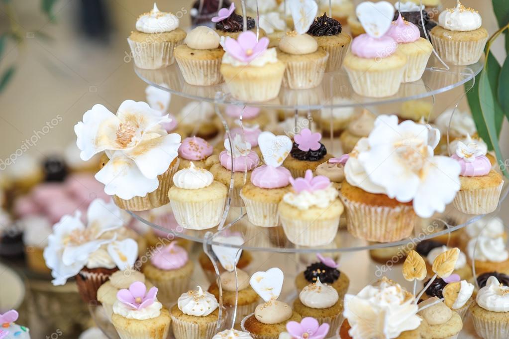 Wedding Decoration With Pastel Colored Cupcakes Meringues Muffins