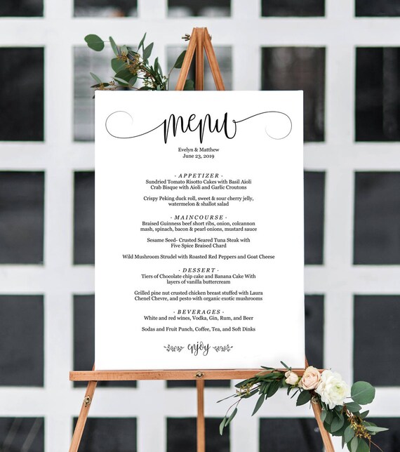 5 Sizes Wedding Menu Signwedding Menu Boardwedding Menu Etsy