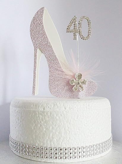 40th Pink And White Birthday Cake Decoration Shoe With Feathers