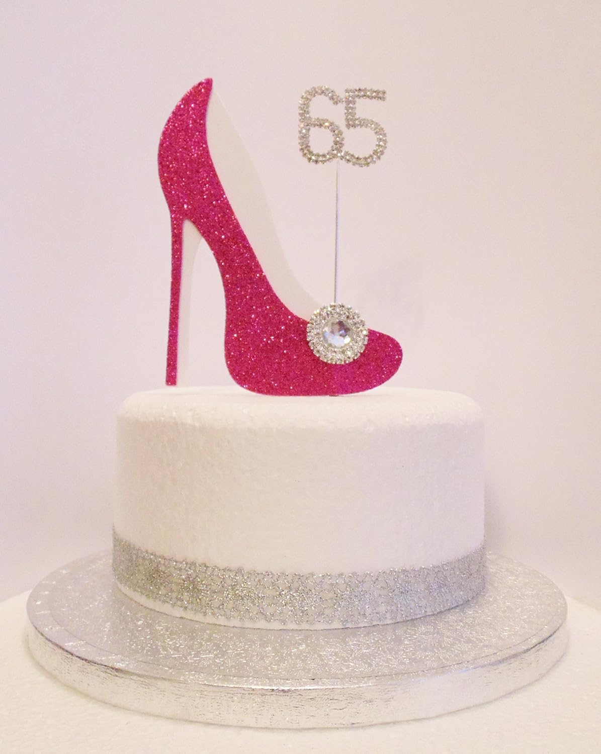 65th Birthday Cake Decoration Cerise Pink White Shoe With