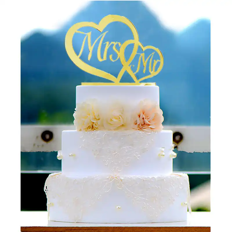 Simple Design Double Heart Acrylic Wedding Cake Topper Mr Mrs