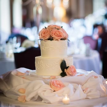 Two Tier White Small Wedding Cake With Yellow Roses Jpg