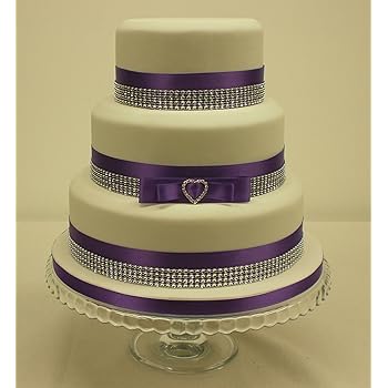 Wedding Cake Bow Set Satin Lilac Ribbon Silver Diamante Trim