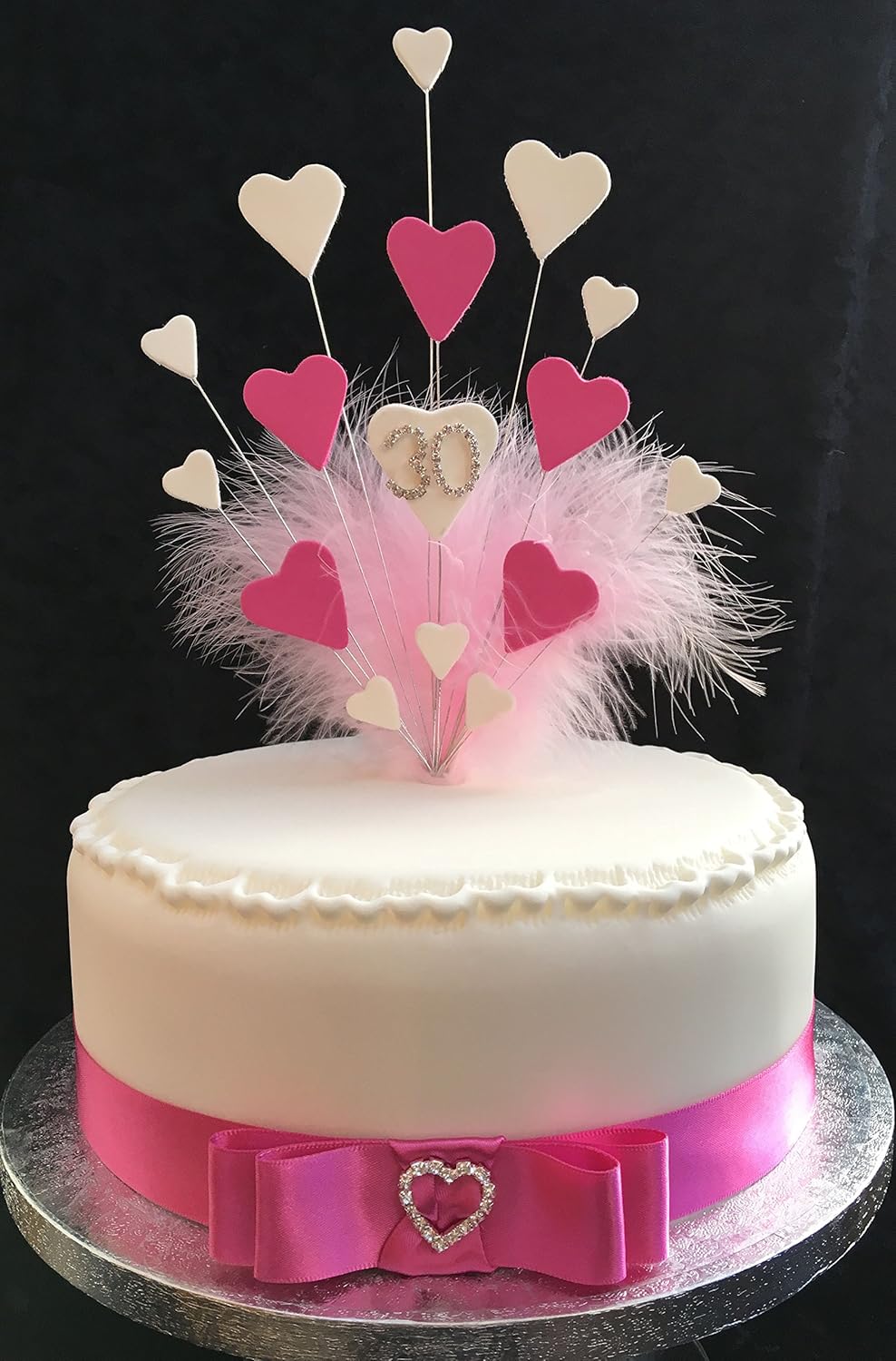 30th Birthday Wedding Anniversary Cake Topper Pink White Hearts