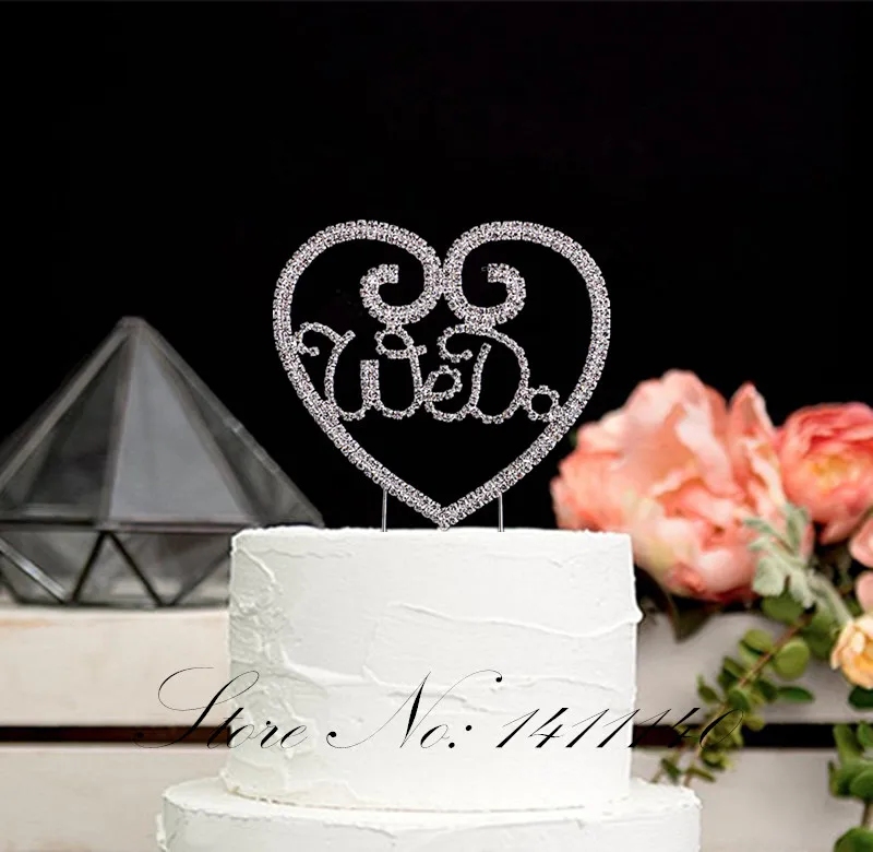 Cinta Bentuk Hati Kami Rhinestones Berlian Kue Topper Untuk
