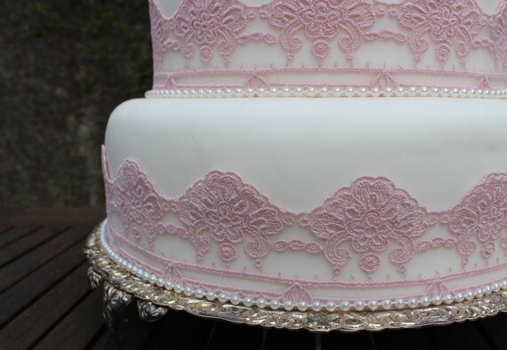 Gatsby Style Lace Pearl Cake Set Rose Pink Lace Wedding Etsy
