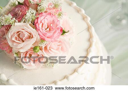 Roses On Top Of A Wedding Cake Stock Image Ie161 023 Fotosearch