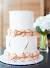 White Wedding Cake Decorated With Golden Macaroons And Berries