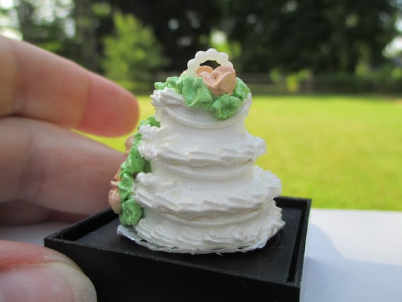 Dollhouse Miniatures 3 Tier Wedding Cake With Peach Colored Etsy