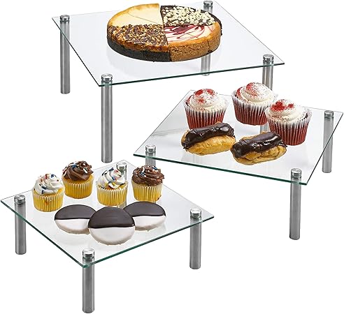 Cake Stands 12 10 8 Set 3 Tier Square Glass Wedding Pedestal