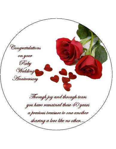 Ruby 40th Wedding Anniversary Personalised Edible Icing 7 5 Inch