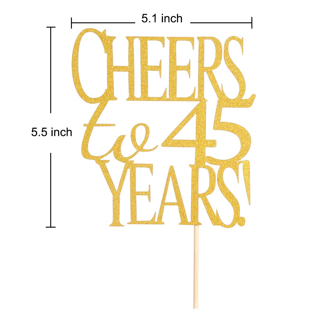 Cheers To 45 Years Cake Topper Gold Glitter Hello 45 Happy 45