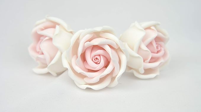 Set Of 3 Blush Pink Sugar Paste Roses Size 2 Handmade Topper