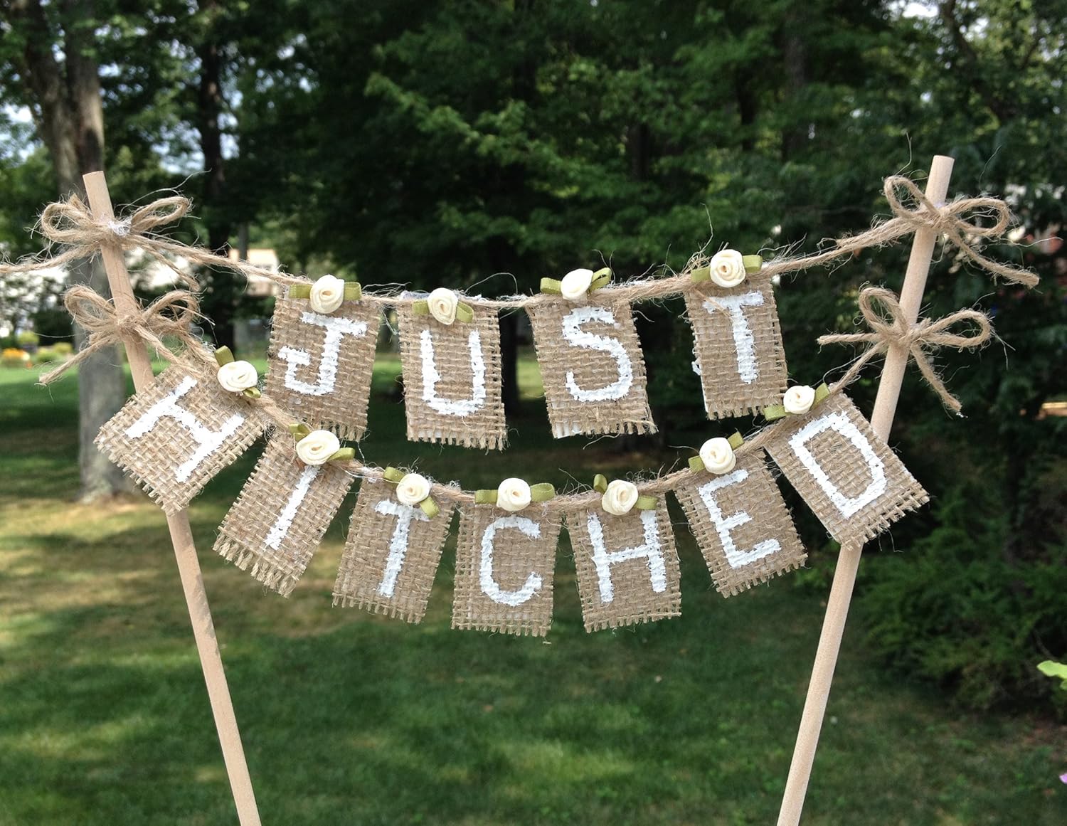 Amazon Com Mini Banner Wedding Cake Topper Just Hitched Burlap