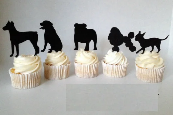 Pet Dogs Silhouette Cupcake Toppers Sports Food Picks Bridal