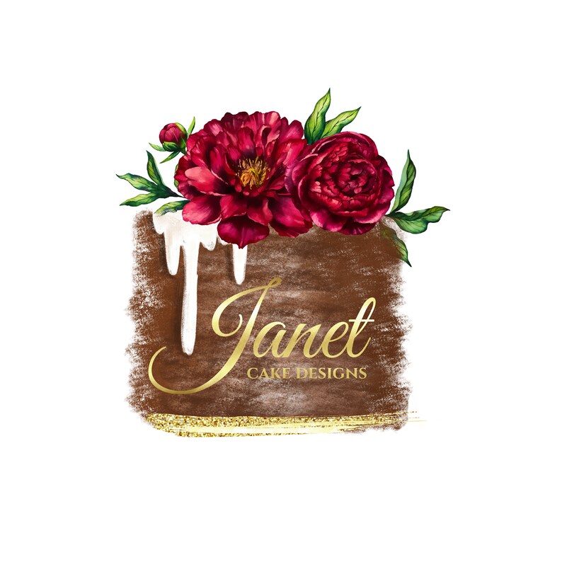 Watercolor Bakery Logo Design Premade Chocolate Cake Burgundy Etsy